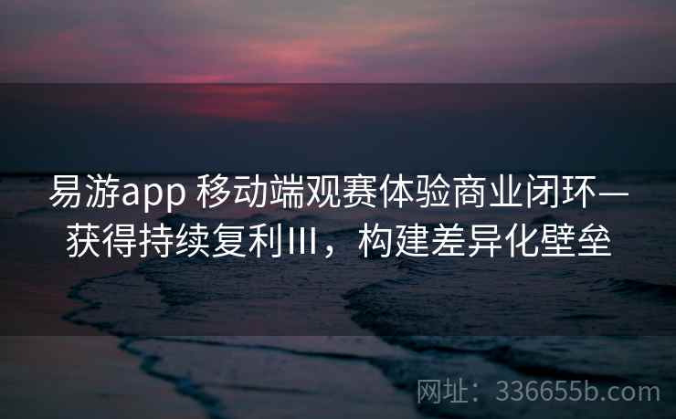 在智能手机普及的时代,移动端观赛体验已经成为现代体育迷的重要需求。随着科技的不断进步,传统的观赛方式已逐渐无法满足用户日益多样化的需求。此时,易游App应运而生,凭借其独特的移动端观赛体验,不仅为用户提供了前所未有的沉浸式观看体验,还成功构建了一个具有持续复利特征的商业闭环,树立了行业标杆。